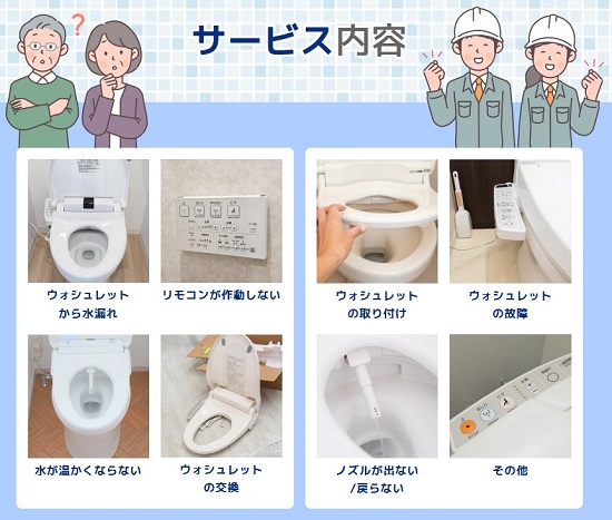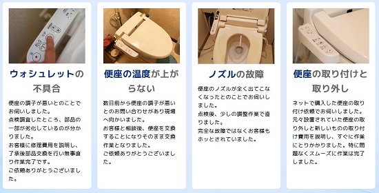 江戸川区で対応可能な温水便座、ウォシュレットの修理サービスとなります。その他のトラブルやご相談に関しましてはお気軽に受付窓口までお問い合わせください。